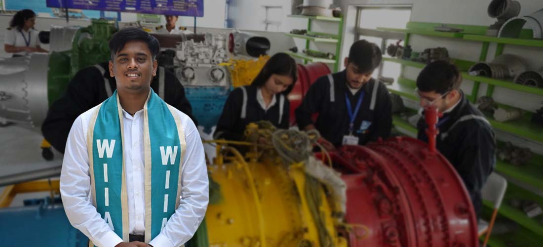 At WIIA, students receive practical training in fully equipped global-standard labs with the latest aircraft maintenance technologies and facilities. The curriculum combines theory with practical training, including field trips to key aviation sites such as Ahmedabad, Mehsana, Nagpur, Mumbai Airport, and Delhi Airport.